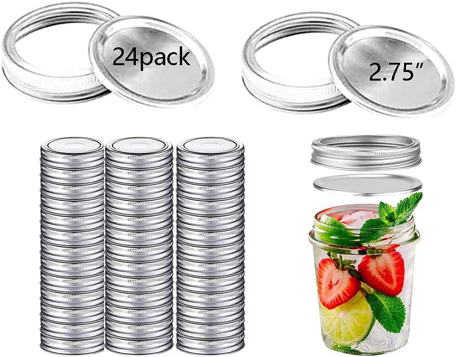 2.75inch Regular Mouth Canning Lids and Sealing Band,Mason Jar Lids for Ball,Kerr Jars,Split-type Lids Leak Proof Stainless Steel Lids for Canning (2.75inch canning lids and bands 24pack)