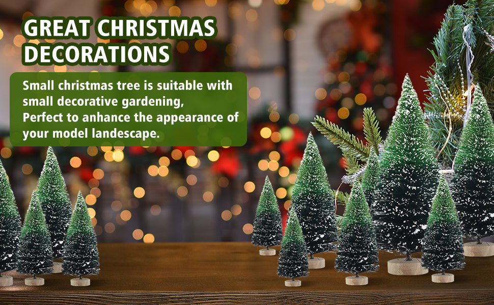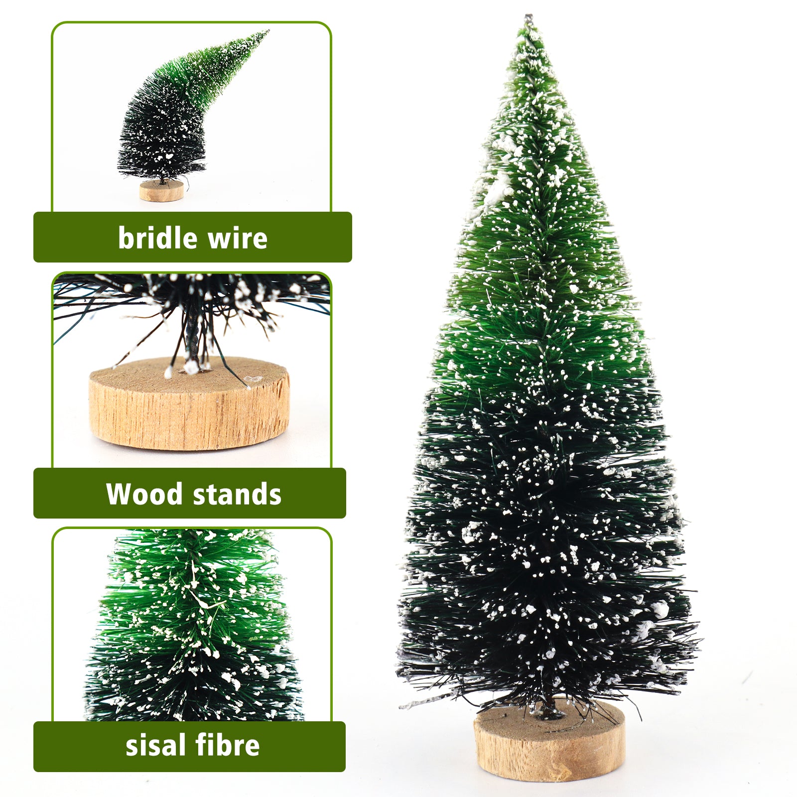 - Premium Material: Bottle brush christmas trees is made of sisal silk and plastic with durable wooden base, easy to stand .The small Christmas tree is bendable and soft , suitable for create a snow white party decorations or vintage Christmas decorations.