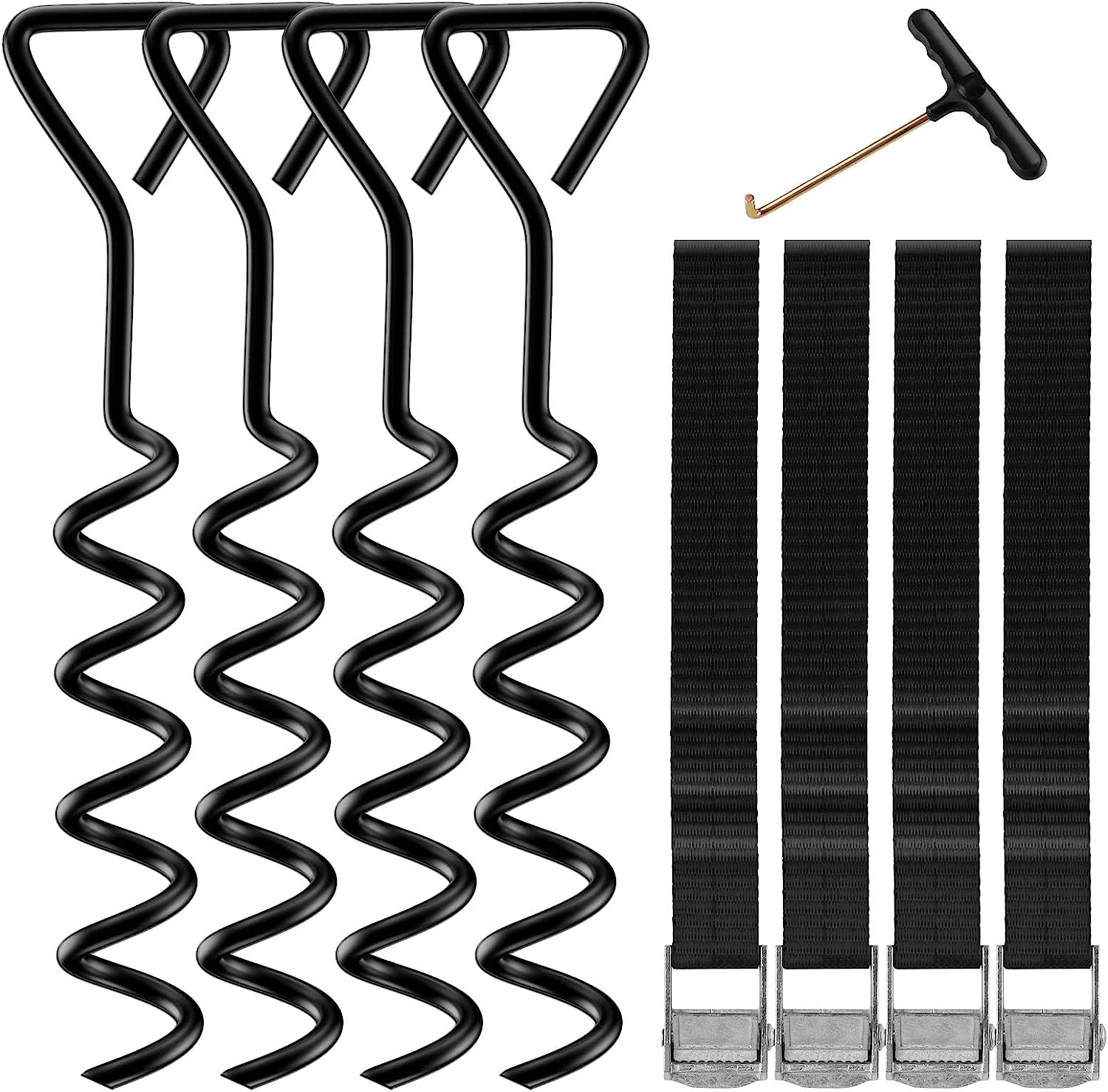 - ♫♫♫Trampoline Stakes Anchors High Wind:Set of 4 trampoline anchors tie down kit can endure straight line winds in upwards of 130mph,and installed easily.