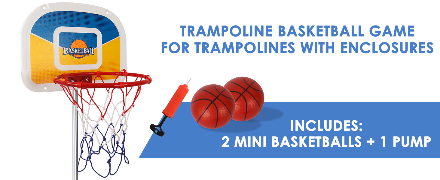 - EASY TO INSTALL: This trampoline basketball hoop attachment features a simple and intuitive design, making it easy to install and disassemble. Simply follow the instructions provided, and you'll have it up and running in just a matter of minutes.