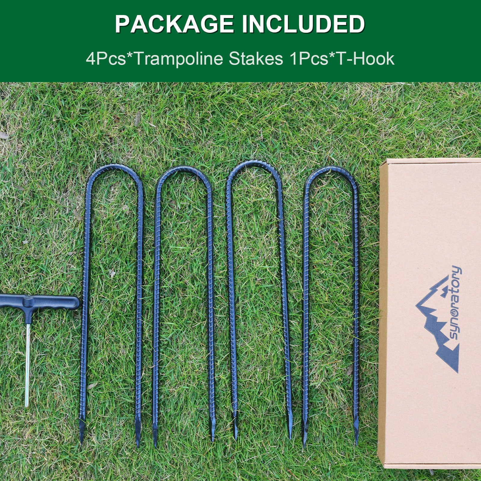 ➤ HEAVY DUTY TRAMPOLINE ACCESSORIES: 8 PCS trampoline stakes with 1 PCS T-Hook, easy to install.Special surface treatment make the stakes have better grip.